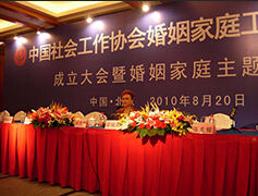 2010年8月20日,中国社会工作协会婚姻家庭工作委员会成立大会在北京国际饭店隆重召开。十届全国人大副委员长顾秀莲、中国法学会婚姻家庭法研究会名誉会长巫昌祯教授、中国人民大学副院长龙翼飞教授、中华女子学院副院长李明舜教授以及协会相关领导等出席了大会。出席成立大会的还有婚姻家庭问题研究的专家和学者、研究咨询机构的负责人、法律工作者、及社会各界人士200余人。经民政部批准,大会宣布正式成立中国社会工作协会婚姻家庭工作委员会。大会经过选举,全国人民代表大会副委员长顾秀莲任现任委员会名誉会长。